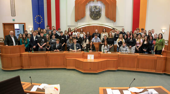 LT-Präsident Hergovich begrüßte die Jugendlichen im Landtag / Diskussion mit…