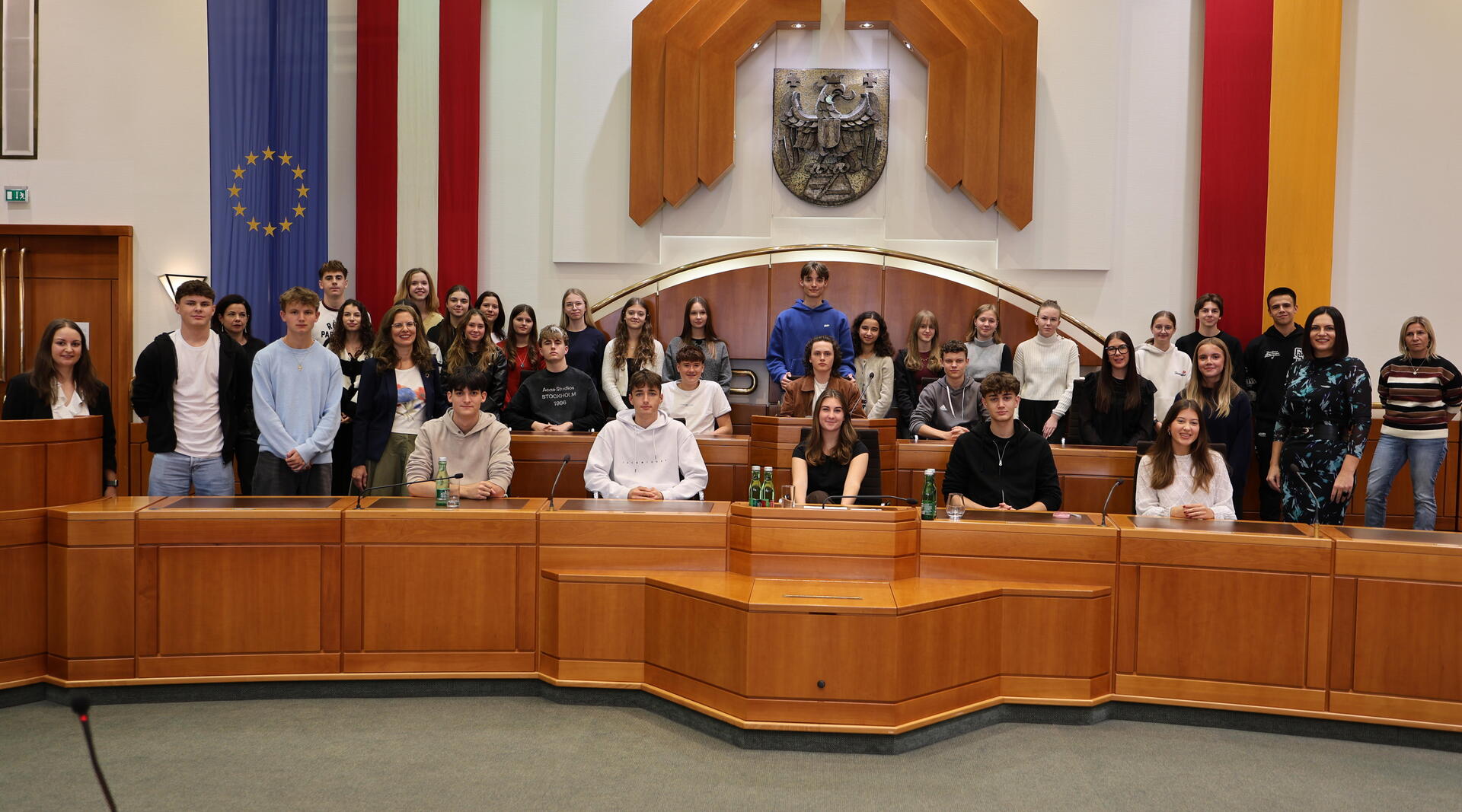Am Dienstag, den 21. Oktober 2025 besuchten Schülerinnen und Schüler des BORG Güssing im Rahmen des Projekts #beteiligt den Burgenländischen Landtag in Eisenstadt. Im Zentrum dieser Initiative steht der Dialog zwischen Jugendlichen und Politikerinnen und Politikern. Ziel ist es, den Schülerinnen und Schülern die Möglichkeit zu geben, über aktuelle Themen zu diskutieren. Landtagspräsidentin Astrid Eisenkopf begrüßte die Jugendlichen im Hohen Haus und betonte die Bedeutung des Projekts: „Demokratie mag abstrakt klingen, dass es aber alles andere als abstrakt ist, können wir den Schülerinnen und Schülern im Rahmen von #beteiligt praxisnah vermitteln. Es freut mich, dass das Projekt #beteiligt so gut angenommen wird und wir den Jugendlichen auch heute wieder vermitteln konnten, wie wichtig Demokratie für unsere und ihre eigene Zukunft und die Chancengleichheit ist. Junge Menschen mitzunehmen und ihnen persönliche Einblicke in das Politikerdasein zu gewähren – das ist mir ein sehr großes Anliegen.“