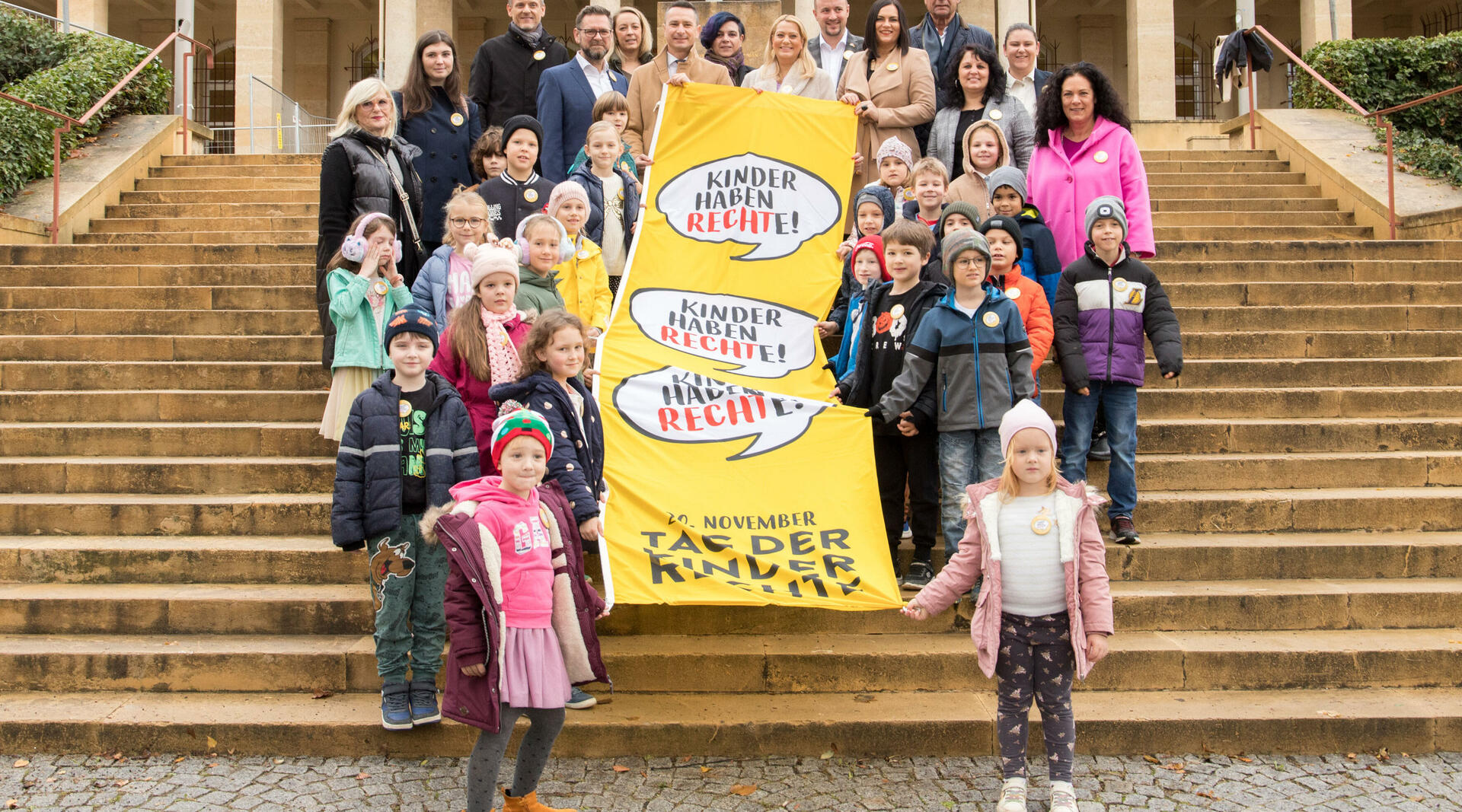 Heute wurde am Landhaus in Eisenstadt auf Einladung von Landtagspräsident Robert Hergovich und den Kinderfreunden Burgenland unter Beisein von Landeshauptmann-Stellvertreterin Astrid Eisenkopf und Landesrätin Daniela Winkler eine Kinderrechte-Fahne gehisst. Anlass ist der „Tag der Kinderrechte“, der heute begangen wird, da am 20. November 1989 die UN-Kinderrechtskonvention verabschiedet wurde. Mit der Ratifikation im Jahr 1992 hat sich auch Österreich verpflichtet, die in der UN-Konvention festgelegten Rechte von Kindern und Jugendlichen einzuhalten. „Damit gibt es ein Regelwerk zum Schutz von Kindern in Österreich und weltweit. Am heutigen Tag soll ins Bewusstsein gerufen werden, dass alle Kinder die gleichen Rechte haben sollen. Denn Kinderrechte sind Menschenrechte“, so der Landtagspräsident.