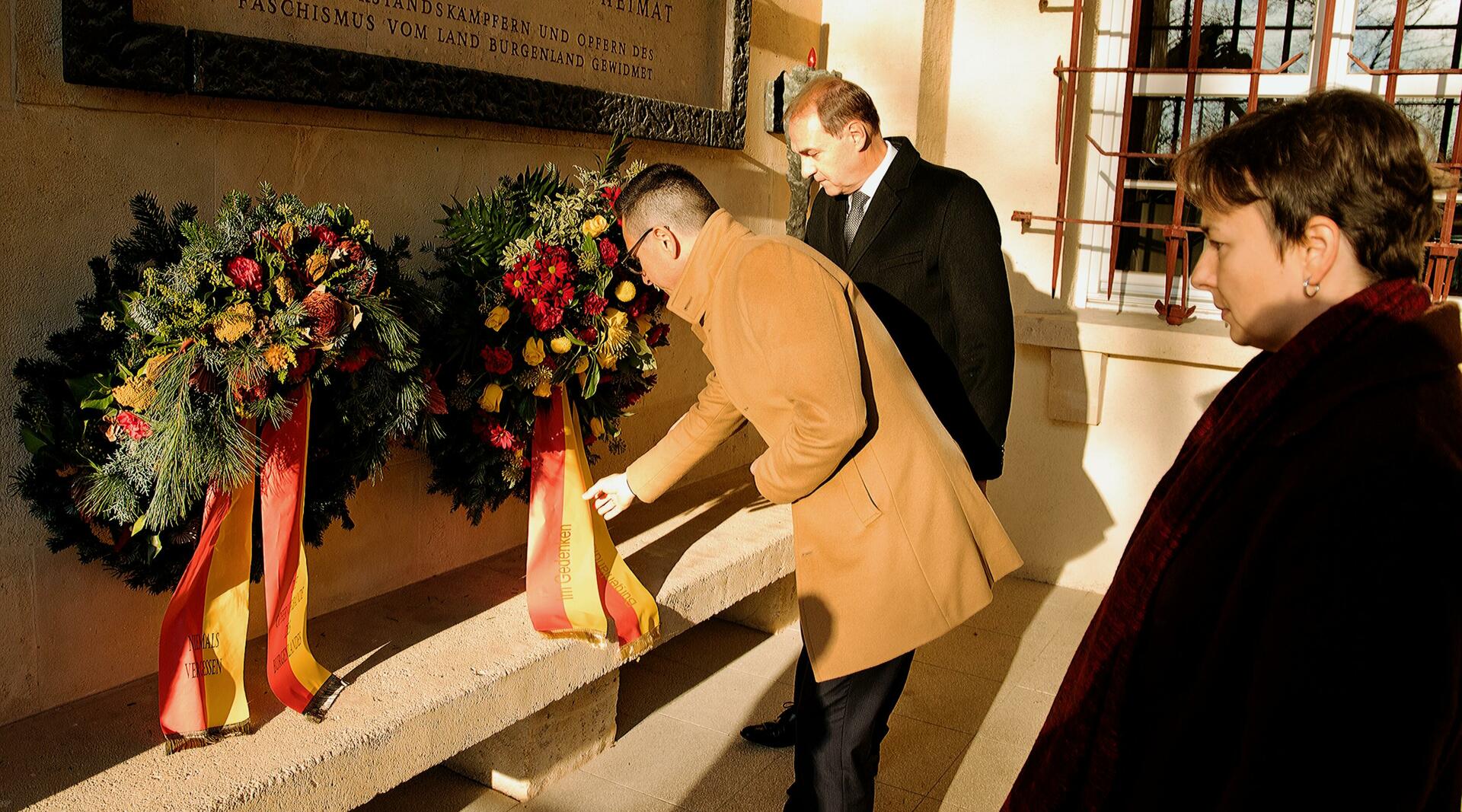 „Wir haben uns heute an diesem Ort eingefunden, um den Opfern von Krieg und Faschismus zu gedenken. Mit der Kranzniederlegung wollen wir jenen Burgenländerinnen und Burgenländern, die von 1938 bis 1945 aus politischen, religiösen und rassischen Gründen dem Naziregime zum Opfer fielen, ein Andenken bewahren“, so Landesrat Schneemann. „Die Geschehnisse dieser Zeit forderten Opfer in allen Gemeinden des Landes. Die jüdische Bevölkerung wurde vertrieben, es gab harsche Zwangsmaßnahmen gegen Roma und Sinti. Die übrige Bevölkerung litt unter politischer Verfolgung, Enteignung, Zwangsverpflichtung und dem Verlust geliebter Menschen.“