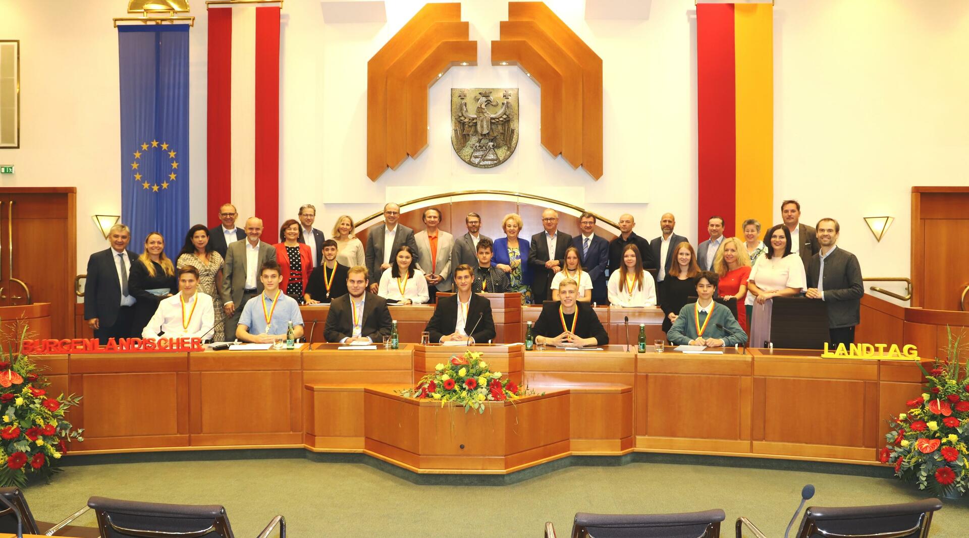 Landtagspräsidentin Verena Dunst erklärt das Projekt: „Jugendliche werden eingeladen, sich aktiv mit ihren vorbereiteten Themen im Landtag einzubringen, Argumente zu formulieren und sich einer politischen Diskussion zu stellen. Zielgruppe sind Jugendliche in Ausbildung ab 16 Jahren. Daher werden alle dafür in Frage kommenden Schulen, aufgeteilt auf drei Schuljahre, eingeladen, SchülerInnen vorzubereiten und in den Landtag zu entsenden.“ Und Dunst weiter: „Ziel ist es, dass Jugendliche angeleitet werden, Themen im Landtag mit den politischen EntscheidungsträgerInnen zu diskutieren, auszuwählen, zu recherchieren, zu argumentieren und sich dafür einzusetzen. Die vorbereiteten Themen werden vorgebracht und im Sinne der partizipativen Mitgestaltung besprochen. Das Projekt ist auf drei Schuljahre ausgelegt und bietet jeder Schule im Burgenland die Möglichkeit, junge Menschen daran teilnehmen zu lassen. In diesen drei Jahren werden alle Höheren und Berufsbildenden Schulen in den Landtag eingeladen. Nur mit dem politischen Wissen und der Bildung ist es möglich, dass alle mündige Bürgerinnen und Bürger werden. Heute werden wir zum ersten Mal eine Demokratiebotschafterin / einen Demokratiebotschafter von jeder Schule ernennen, die bereits an dem Projekt teilgenommen hat. Es waren bisher 12 Schulen mit zirka 400 Schülerinnen und Schülern zu Gast. Ich freue mich sehr, dass dieses Angebot von den Schulen so zahlreich angenommen wird. Ein großes Danke geht an alle Institutionen, die unsere Initiative so engagiert unterstützen.“
